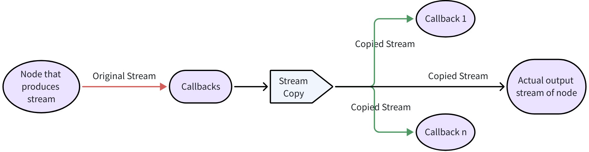 Taking the presence of nodes like ChatModel that have true stream output as an example, when there are Callback aspects, the ChatModel’s output stream: