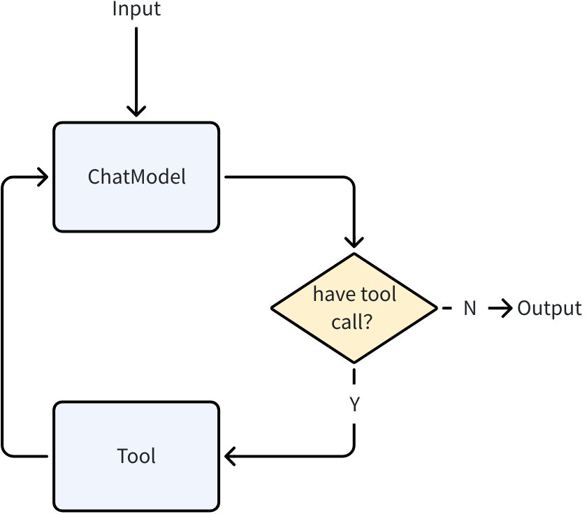 ChatModelAgent is the most important pre-built component in ADK. It encapsulates the interaction logic with large language models and implements the classic ReAct (Reason-Act-Observe) pattern. The running process is: