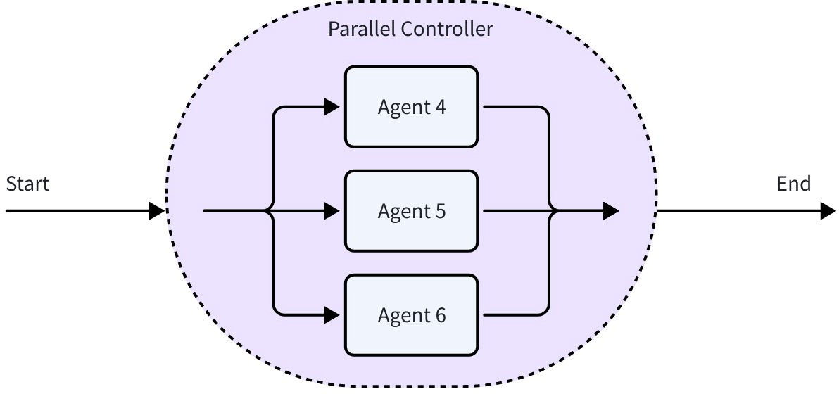 • Parallel Agent: Executes Agents registered in the configuration concurrently, ends after all Agents complete, following these principles: